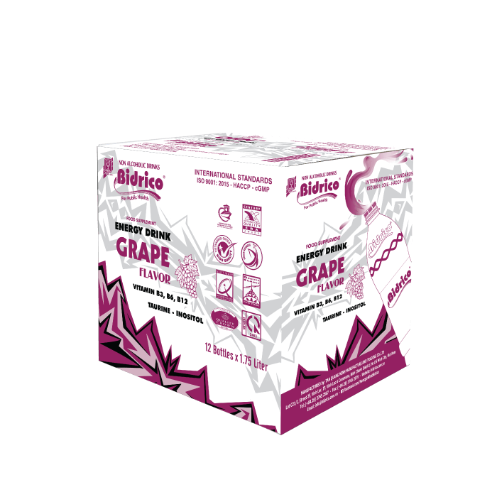 Bidrico energy drink grape flavor 1.75l bottle is the perfect choice to quickly replenish energy. The combination of juicy, sweet, slightly sour grape with ingredients such as vitamins B3, B6, B12, taurine help to keep the mind alert, restore physical strength when tired or needing deep concentration.
