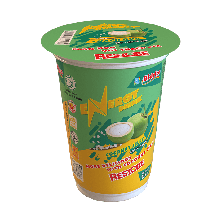 With a compact and convenient design, the product is contained in a 225ml cup, easy to take away when doing outdoor activities. Along with a safe and hygienic production system, Restore energy drink coconut jelly confidently brings customers good and quality product experiences.