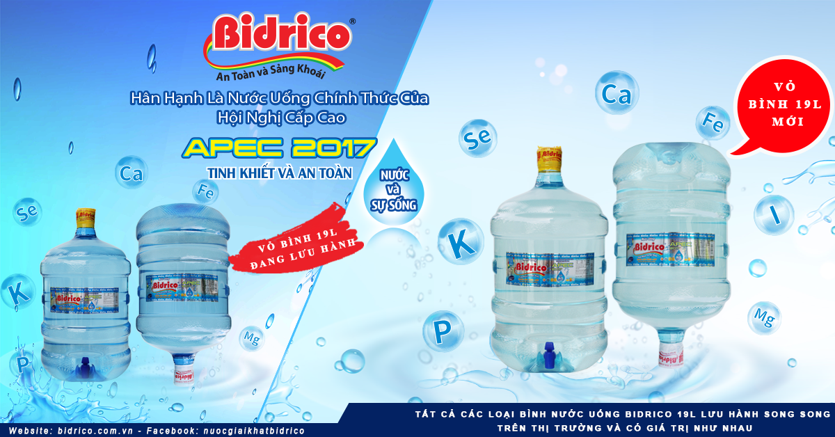 Nước uống Bidrico vinh dự là sản phẩm phục vụ hội nghị cấp cao APEC năm 2017. Được sản xuất bởi công ty TNHH SX&TM Tân Quang Minh, sản phẩm luôn tuân thủ những tiêu chuẩn nghiêm ngặt về quản lý chất lượng theo quy trình ISO 9001:2015, HACCP, tiêu chuẩn QCVN 6-1:2010BYT và các quy định của Ban Quản Lý An Toàn Thực Phẩm – Sở Y Tế Tp. Hồ Chí Minh.