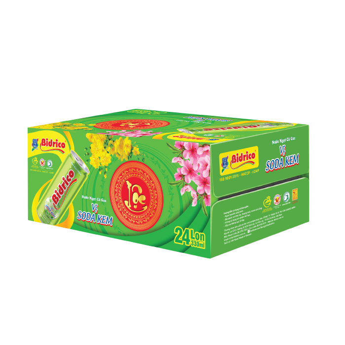 Liên hệNước ngọt có gaz hương soda kem Bidrico lon 330ml được sản xuất theo công nghệ hiện đại, khép kín từ khâu lựa chọn nguyên liệu, chế biến và đóng gói theo tiêu chuẩn. Mỗi công đoạn đều trải qua quy trình kiểm tra nghiêm ngặt và giám sát kỹ càng để cho ra đời dòng sản phẩm an toàn, chất lượng với vị ngọt dịu giúp giải khát nhanh chóng. Chính vì nước ngọt có gaz hương soda kem tạo cảm giác tươi mát và sảng khoái cực ĐÃ, nên đây là sản phẩm được mọi lứa tuổi ưa chuộng và tin dùng mỗi ngày. Các hương vị nước ngọt có gaz Bidrico lon 330ml: Cam, soda kem, cola, xá xị