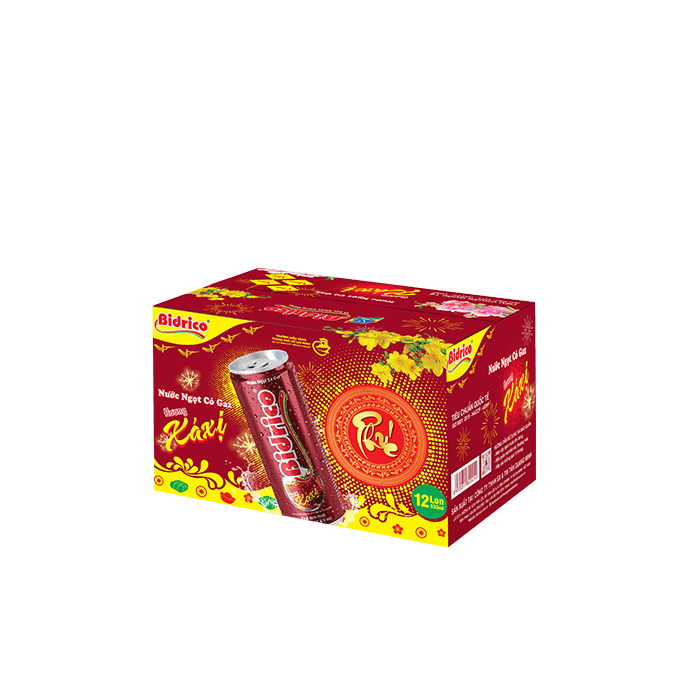 Nước ngọt có gaz Bidrico hương xá xị xuân thùng 12 lon 330ml