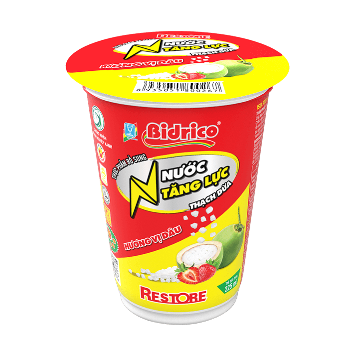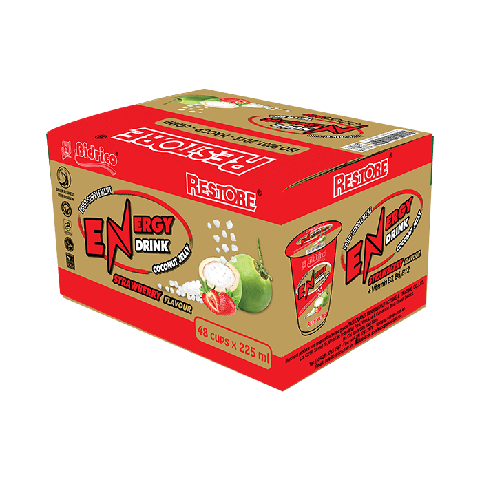 Với thiết kế nhỏ gọn, tiện lợi đựng trong ly 225ml giúp dễ dàng mang theo khi hoạt động ngoài trời. Cùng với hệ thống sản xuất an toàn và vệ sinh, nước tăng lực thạch dừa hương vị dâu Restore tự tin mang đến cho khách hàng những trải nghiệm sản phẩm tốt và chất lượng.