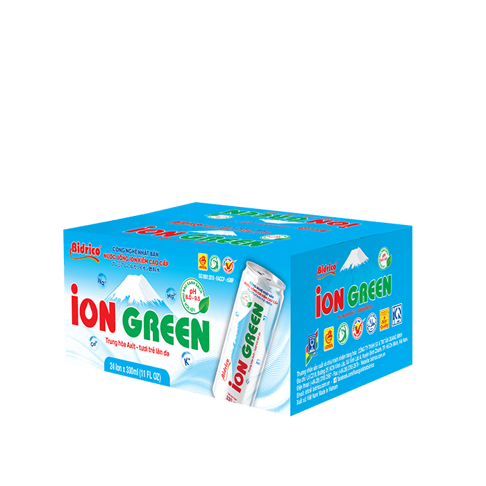 Nước uống ion kiềm cao cấp ION GREEN lon 330ml được tạo ra từ công nghệ điện giải, tách nước thành các ion H+ và OH-, có tính kiềm tự nhiên với độ pH khoảng từ 8.0 – 9.5. Sản phẩm được sản xuất trên dây chuyền tự động, khép kín, tích hợp công nghệ điện phân hiện đại từ Nhật Bản.