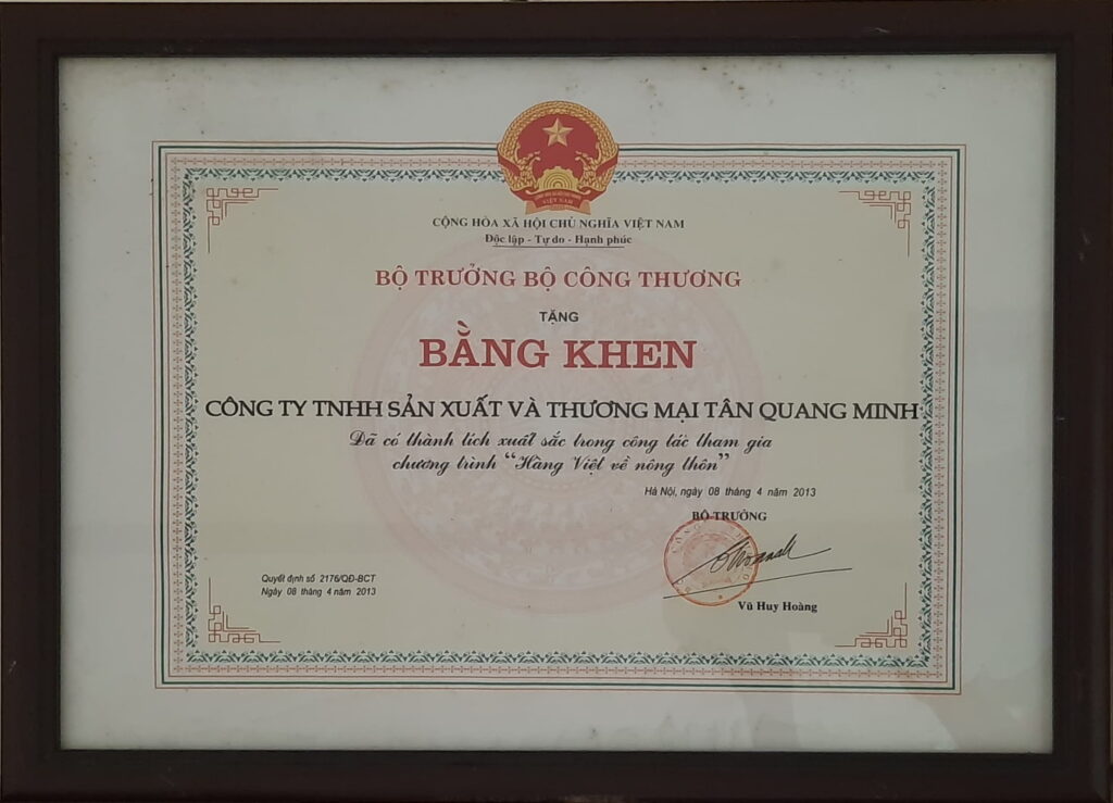 Chứng nhận “Trusted Green – Chỉ số Tín nhiệm Xanh 2013” Công ty TNHH Sản xuất và Thương mại Tân Quang Minh – Bidrico vinh dự đạt Chứng nhận “Trusted Green – Chỉ số Tín nhiệm Xanh 2013″ do tổ chức InterConformity (CH Liên bang Đức) và Tổ chức chứng nhận NQA (National Quality Assurance...