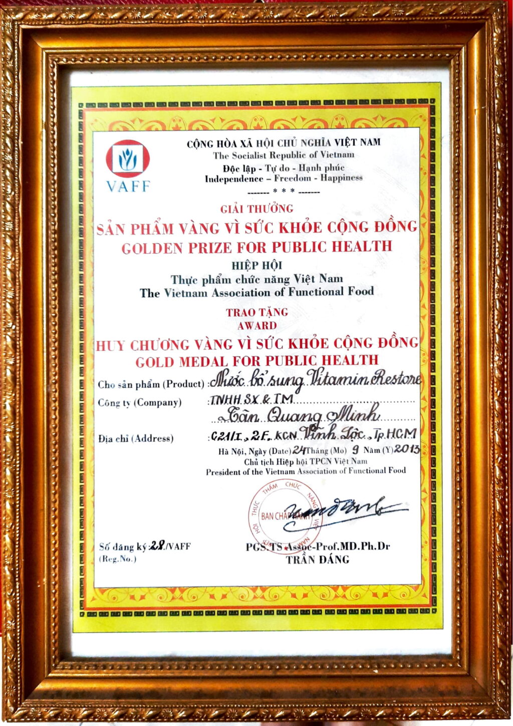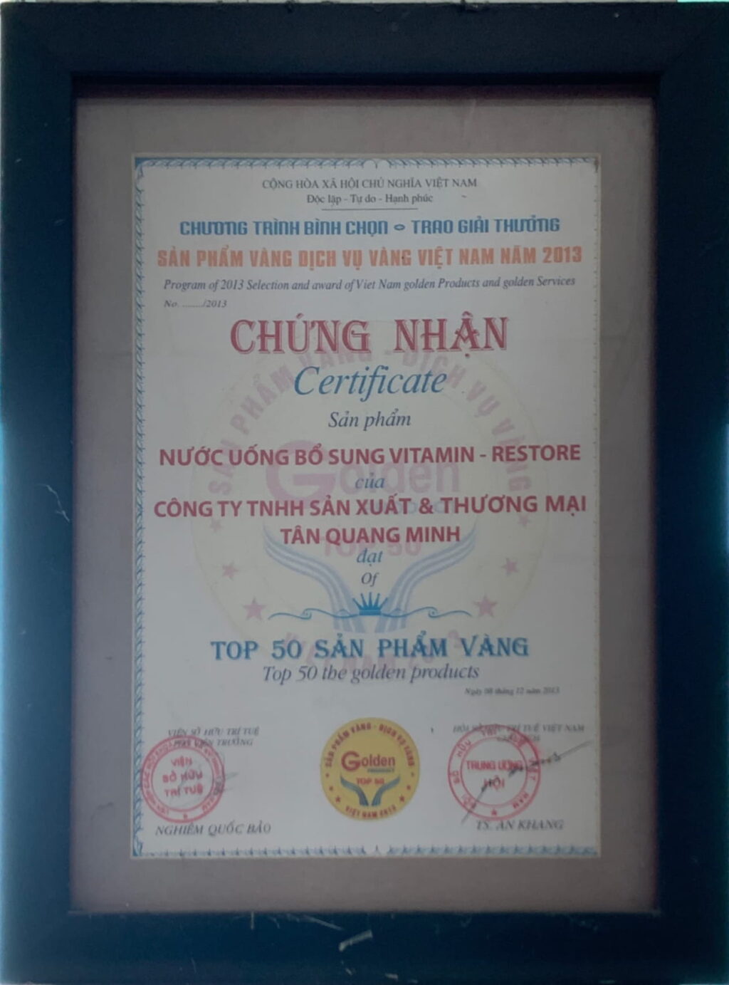 Vitamin – RESTORE là sản phẩm Vàng Việt Nam năm 2013